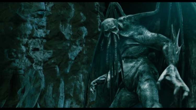 Et puis, l'apparition de Cthulhu, bien que spectaculaire (la créature est très réussie, il faut le reconnaître), est assez gênante car le Grand Ancien n'apparaîtrait jamais personnellement lors d'une incantation. Qui plus est, un adepte de la magie noire parvient à invoquer une créature en mesure de neutraliser Cthulhu et de le renvoyer d'où il vient. Une idée farfelue, car Cthulhu est le plus puissant des Grands Anciens, et aucune entité ne pourrait lui tenir tête, à part peut-être les Anciens Dieux, mais de ceux-ci il n'est nullement question dans « Le monde interdit ». Et puis, n'oublions pas que la vision d'un Grand Ancien n'a que deux issues possibles : la folie ou la mort. Un constat sans appel dont le réalisateur ne tient pas compte.