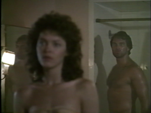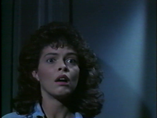 Un petit mot sur le réalisateur et les acteurs pour finir ? On me dit que non. Tant pis pour ces rabats-joie... Andrew Stevens nous est familier depuis ses rôles secondaires dans Massacre at Central High, Vigilante Force ou Day of the Animals, avant d'être dirigé par De Palma dans le très réussi "Furie", sorte de Mont Everest de sa carrière qui ensuite retombe quelque peu en intérêt ("Chasse à mort" de Peter Hunt, Le justicier de minuit, "Tusks" ou encore "M.N.I. mutants non identifiés" alias "The Terror Within I & II" de Thierry Notz). Il est utilisé ici de manière classique, à demi-manipulé, à demi-manipulateur, les sourcils ostensiblement froncés. Mary Page Keller est, comme on l'a déjà vu, mono-utilisée avec, ça y est, j'ai compté, quarante-sept plans de sursauts de surprises et de frayeurs en quatre-vingt-dix minutes (ce qui nous fait une moyenne athlétique de un sursaut toutes les 'une minute et cinquante quatre secondes', vous pouvez vérifier). Scared Stiff est son premier film pour le cinéma et celui-ci sera même présenté en section parallèle au Festival de Cannes en 1987 (non, je décanne pas). Elle travaille depuis beaucoup plus pour la seule télévision et on la voit régulièrement dans des séries telles que "New York Police Blues", "Nip/Tuck", "24 heures chrono" ou "Harry Bosch". Nicole Fortier, dans le rôle de la femme du négrier, n'a fait que deux films. On la connait mieux en démon, à poil, dans le piteux L'ange des ténèbres de Camilo Vila. On peut encore citer la présence de Bill Hindman, le "Coach Goodenough" de la série des "Porky's" dont Scared Stiff est le dernier film.