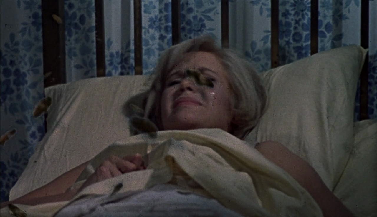 La musique de Wilfred Josephs ("Les crocs de Satan", "Le manoir des fantasmes"), dirigée par l'incontournable Philip Martell, est à l'avenant et souligne parfaitement l'action. À ce niveau, The Deadly Bees peut aussi se prévaloir de receler deux ou trois scènes assez marquantes : soit, on est un peu désolé pour le toutou, encore qu'on évite du coup les sentiments mielleux, tandis qu'ailleurs, deux attaques sont fort bien conduites : l'une sur la femme du fermier (Catherine Finn) dont le visage s'en trouve ravagé, l'autre sur notre héroïne, dans sa propre chambre. De sympathiques moments de suspens qu'on aurait bien tort de bouder. Mais laissons cela aux snobs et aux rednecks cinéphiles, tapis aux confins des beaufland contrées (MST666, NANASESBROQUESLECHINOISFAITPINGLOL...).