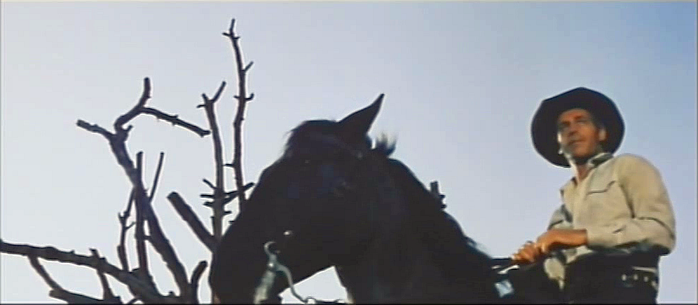 Quelques scènes de discussions tendues devant des portes de saloon, des jeux de pokers truqués avec des mecs mal rasés au Q.I. de poneys sauvages, quelques sprints - mille fois vus - dans des virages d'Almería tout faits de rochers rocailleux, un héros dont le charisme semble réservé aux deux pouliches du film, heureuses élues, un méchant de carnaval mais non dénué pour autant d'un poil de noblesse (et d'un autre dans la main), le milliardième duel final qu'on voit venir du fin fond du désert des Mojaves, du sang (encore que), de la poussière, de la chique et du mollard... bref, tout cela, vous en conviendrez, n'est pas un programme très folichon.