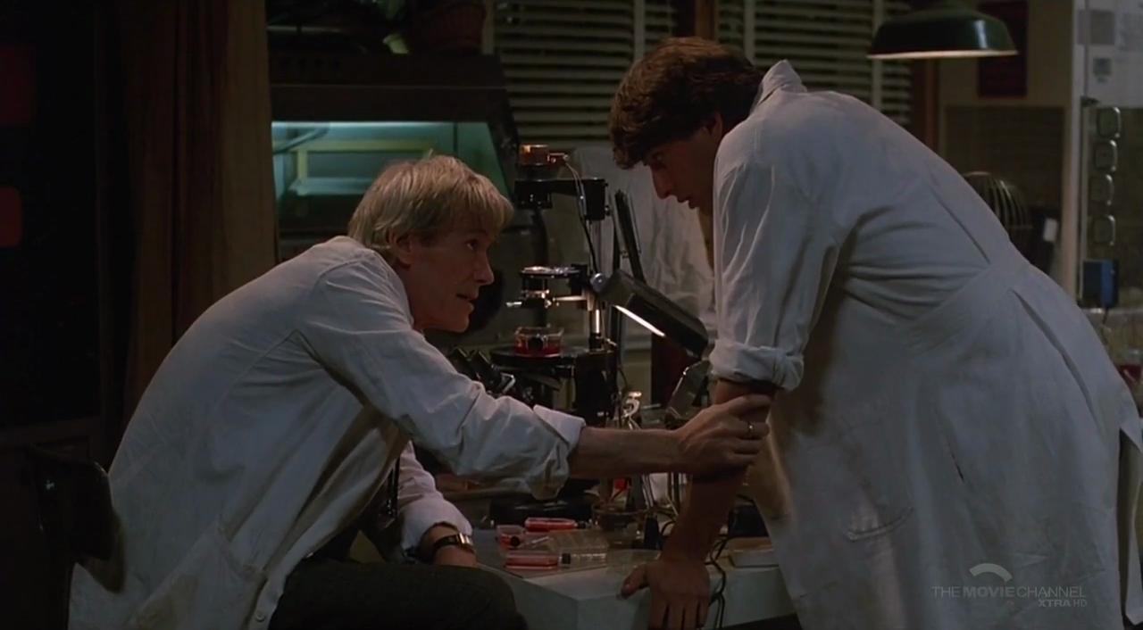 Le propos en lui-même reste cependant étonnant, original : on stimule la grossesse de Virginia Madsen et on en attend un oeuf. Lorsque cela se fait, l'oeuf signifie la naissance d'un amour mais aussi de la mort clinique de notre jeune femme. On flirte alors de très près avec le mélo sirupeux, tendance grassement soulignée par la musique de Sylvester Levay ("Choke Canyon", "Cobra"), pendant ce temps Mariel Hemingway en chaudasse de haut niveau tombe amoureuse du vieux scientifique excentrique, et Vincent Spano se morfond, ne croit pas que sa bien-aimée va trépasser alors qu'il lui a fait l'amour la nuit-même.