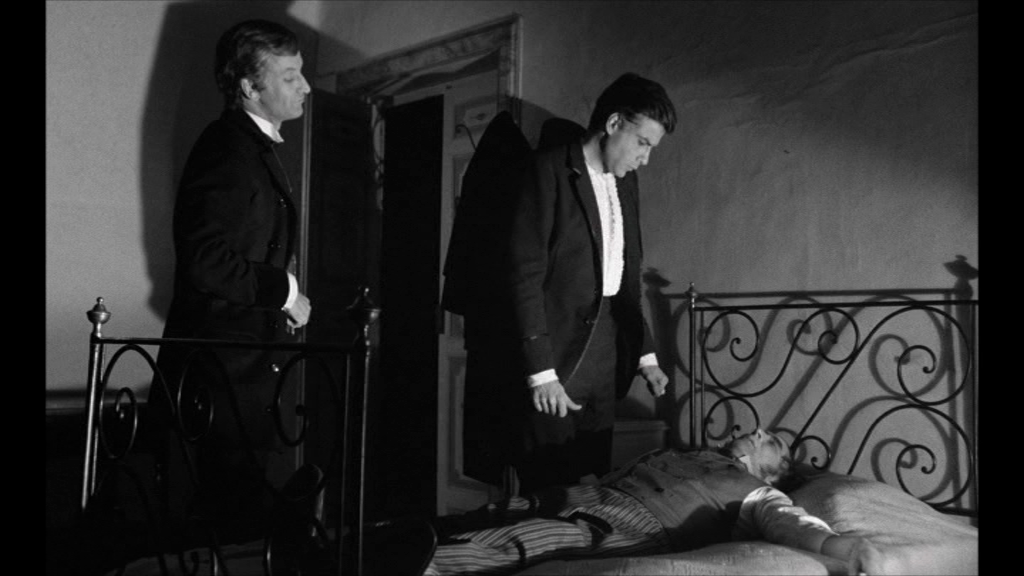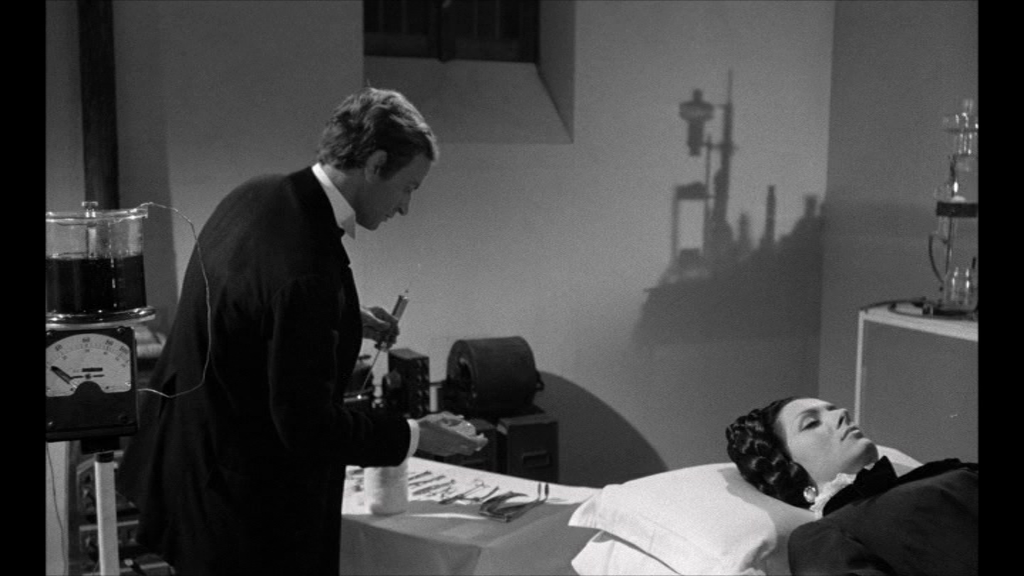 Voilà pour l'histoire. Dire qu'elle est relativement complexe relève de l'euphémisme, même si finalement Mario Caiano ne s'en sort pas trop mal, tout influencé qu'il est par Le Masque du Démon de Mario Bava et par La Maison du Diable de Robert Wise. Aux deux, il reprend l'emploi du noir et blanc. Au film de Robert Wise, il empreinte le côté psychologique, avec une héroïne sensible dont le gros point faible, c'est-à-dire sa personnalité complexée, sera le principal moteur des manifestations paranormales. Battements assourdissants au milieu de la nuit et irresistible envie d'aller dans les lieux les plus macabres du château, telles sont quelques un des éléments repris de La Maison du Diable. Au Masque du Démon, Caiano reprend bien entendu le côté sexy d'une Barbara Steele qui se promène souvent en déshabillé, et qui lorsqu'elle incarne Muriel tend à devenir une sorcière bien comme il faut, avec une large dose de perversité sexuelle, ici le sado-masochisme. Certaines scènes franchement sanglantes pour leur époque (les restes encore fumants d'un homme brûlé vif, un visage mutilé...) ne seront pas non plus sans évoquer le film de Mario Bava, et continueront ainsi à paver le chemin au cinéma d'horreur transalpin vers des années 70 qui seront riches en gore.