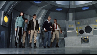 "Après un atterrissage un peu hasardeux et un peu par hasard sur une étrange planète, l'équipe à présent unie des Terriens et des Hydriens (?) se fait attaquer par des hommes singes bien ridicules ! 1 point. Le vaisseau spatial ressemble à un jouet vraiment très basique et ses vols spatiaux sont parfaitement ringards. 1 point. La fille du professeur est très mimi et a un très joli cul qu'elle sait mettre en valeur dans ses tenues moulantes. 1 point. Les séquences d'apesanteur et de sorties dans l'espace n'ont peur de rien et sont plutôt réjouissantes. 1 point.