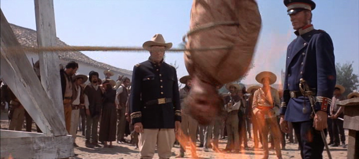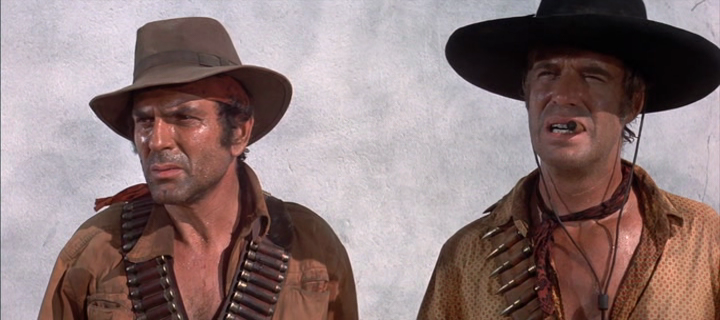 À vouloir spéculer sur les succès de l'époque on se retrouve à vrai dire avec un drôle de mélange, voire un puzzle incomplet tout fait de références : des canons dont on demandera à ce qu'on les fasse exploser ("Les Canons de Navaronne"), une ou plusieurs taupes dans une mission-suicide ("Quand les aigles attaquent"), une mission confiée en haut lieu de manière vicelarde ("Les Professionnels" de Richard Brooks), l'ambiance ressemble assez souvent à "La Horde sauvage" et cligne aussi largement de l'oeil au "Bandido caballero" de Richard Fleischer. Le tout surfe bien entendu sur la vague des westerns spaghettis mettant en scène la révolution mexicaine : on a donc droit à la présence de Giovanna El Mercenario Ralli. On affuble George Peppard d'un cigare à la Clint et d'un cynisme tout Leonien (le mec laisse tout de même brûler vif le frangin de son meilleur pote pour récolter lui aussi, grâce à cette torture, des informations).