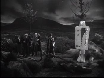 Amusant mais très classique dans sa réalisation, « Devil Girl from Mars » n’évite pas, comme ses confrères d’outre atlantique, de verser dans la fibre patriotique dès lors qu’il s’agit, au moment du climax, de désigner l’homme qui devra se sacrifier en montant à bord de la soucoupe volante. Evidemment, chacun des mâles au sein du groupe se portera volontaire, histoire de montrer au spectateur que les rosbifs ne sont pas des mauviettes.