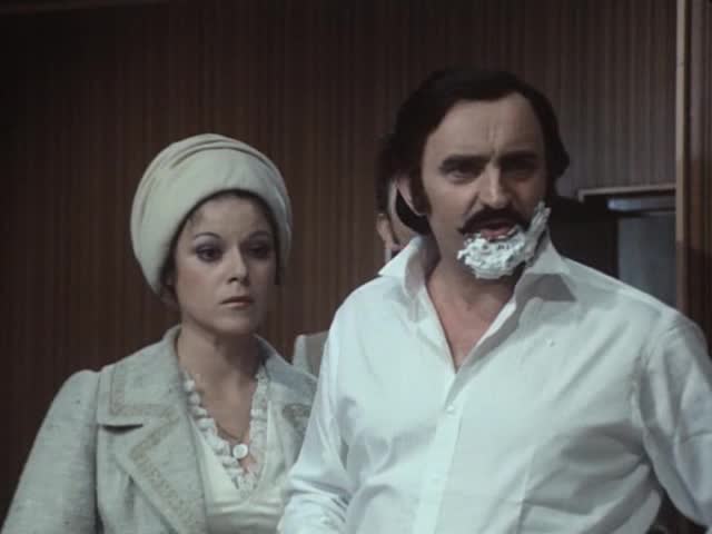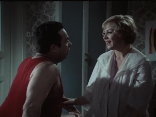 Revenons sur l'interprétation. Si, dans les rôles principaux, Sovák et Menšík sont impeccables (au risque de me répéter... ah... trop tard, je rajouterai : comme d'habitude), c'est surtout Iva Janžurová dans un double rôle (seulement serait-on tenté de dire si on a vu Monsieur, vous êtes veuve ou Four Murders Are Enough, Darling) particulièrement casse-gueule qui impressionne. On notera dans les seconds rôles, outre la présence d'habitués du genre déjà vus chez Lipsky ou Vorlíček, celle plus surprenante de Juraj Herz, le réalisateur slovaque de L'incinérateur de cadavres, ma foi fort crédible en magouilleur avec son physique de bande dessinée. De fait, nombre de metteurs en scène assimilés à la nouvelle vague tchèque des années 60 ont débuté en tant qu'acteurs (Jiří Menzel par exemple) et mené de pair les deux carrières.