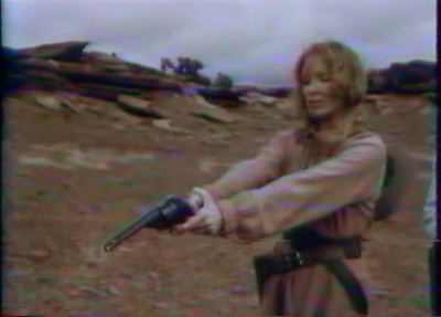 Quant au spectateur égaré ici uniquement pour le sexe, il mérite en tout bien tout honneur de lui être signalé, avec tout le respect qui lui est dû, qu'il l'aura dans le cul : en effet, non seulement les hommes dans "Jessi's Girls" comptent leurs munitions tant et si bien qu'ils tirent souvent leur dernière cartouche tandis que certaines de nos héroïnes ici-présentes, malgré nos encouragement à se faire justice ("Allez Currie !"), se prennent leur pied à l'étrier. Sondra Currie ("Cette femme est un flic"), qui n'a rien d'une épice, n'arrivera même pas à conquérir l'indien (Gavin Murrell), séduisant du tomahawk, mais assez peu loquace... Son seul dialogue est ici un tantinet réduit : "Tuez le !" (à propos d'un des brigands à la cervelle de zgeg rattrapé avec diligence par les roubignoles). En revanche, il sera bien plus expressif lorsque dans une grange il se fera caresser le totem par Regina Caroll, blondasse à tendance jument nymphomane qui, du reste, en ressortira avec une tête de poney albinos affublé de la perruque de Peggy la Cochonne. (*)