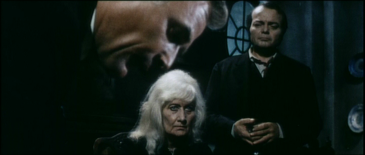 Après que le spectateur ait pris connaissance des principaux protagonistes, il est convié à se retrouver dans la fameuse demeure où vivent Uriat et sa mère (aux alentours de la vingtième minute). Un décor gothique à souhait, un bâtiment qui paraît faire le lien entre le monde des morts et celui des vivants, avec comme point d'orgue la fameuse séance de spiritisme où la vieille femme se fait la voix des victimes et Uriat le juge et futur bourreau.