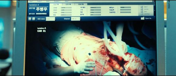 Par contre, côté inspiration, on a un arrière-goût de déjà vu. Normal, puisque le script s’amuse au jeu du copier/coller avec pas mal de productions antérieures. Mais surtout, le réalisateur n’hésite pas à proposer carrément une version urbaine du film de Wolfang Petersen, « Alerte/Outbreak », au point que chaque scène-clé du film est reprise et gonflée aux amphétamines. Le village devient donc une ville, le camp où sont parqués les malades est beaucoup plus grand, la grange où sont entreposés les corps devient un stade de football transformé en crématorium (scène qui vaut son pesant de pop-corn). On a droit au même survol des hélicoptères (plus gros en Corée !), aux gens qui toussent avec gros plans des postillons, aux militaires obtus, mais aussi aux invraisemblances assez croquignolesques (la mise en quarantaine de la ville expédiée en quelques plans). Le duo Dustin Hoffman/Cuba Gooding Jr, qui courait dans tous les sens pour retrouver le patient zéro (un singe), est remplacé par le trio formé par un sauveteur, un médecin et sa fille. D’ailleurs, la recherche du patient zéro devient ici accessoire, il sera retrouvé par hasard car c’est la petite fille qui devient la pièce centrale du récit, pour finir par représenter le dernier espoir de guérison (putain... le symbole !).