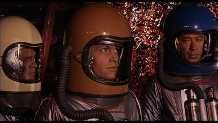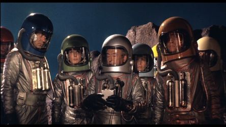 Margheriti débute donc sa carrière de réalisateur par deux films complètement en marge des modes de l’époque (péplum et horreur gothique), en effet les voyages dans l’espace n’ont plus tellement la cote depuis quelque temps, ils ont été remplacés par d’autres thèmes (mutations, voyage dans le temps, etc.) C’est peut être de là que vient l’explication du succès de ces deux films : le manque d’offre, Magheriti venant à point combler une demande. Influencé par toute une culture venant d’outre-Atlantique (par moment on pense aux vieux serials des années 30), le réalisateur italien s’offre une petite friandise, répartissant les effets spéciaux avec parcimonie : la première partie du film compte peu de plans dans l’espace, mais la base martienne est particulièrement réussie. Autre détail, les vaisseaux spatiaux n’ont pas cet aspect "plastique" qui caractérise les maquettes mais un aspect métallique qui accentue le réalisme. Evidemment, la maniabilité n’est pas encore époustouflante, on notera aussi que les séquences spatiales sont presque monochromes (les vaisseaux sont blancs) mais lorsque l’un d’eux se pose sur l’astéroïde, il devient d’un rouge pétant. Petite particularité : la production ne pouvant se payer des effets de maquillage coûteux (et peut être ridicules) pour les extra terrestres, le scénario trouve un palliatif par le biais d’un super ordinateur seul rescapé d’une civilisation éteinte. Ainsi, les fameuses soucoupes volantes sont elles pilotées par un tube lumineux (effet simpliste mais d’une redoutable efficacité) relié au super ordinateur, alors que les extraterrestres ne sont que des pseudos squelettes tapissant le sol. Des stock-shots météorologiques sont utilisés pour simuler les catastrophes naturelles, la plupart des décors sont des installations industrielles censées représenter soit une fusée, soit une base. Seule la serre du professeur, l’intérieur de la planète et quelques décors subalternes ont été créés en studio.