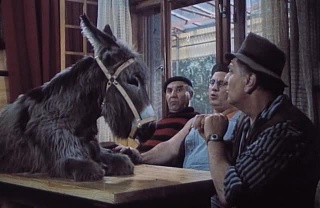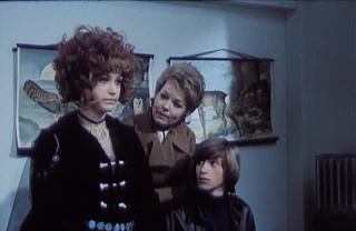 Mais le pire, il faut bien le dire, c'est l'interprétation. Non pas que cette dernière soit calamiteuse, mais pour faire passer ce genre de gags parfois assez téléphonés il faut une "vis comica" et un métier que les jeunes apprentis acteurs du trio vedette ne possédaient pas, en tous cas pas à l'époque du film. C'est quasiment toujours le cas avec des comédiens adolescents : ils ont perdu le naturel des enfants et n'ont pas encore eu le temps d'apprendre le métier ; donc, sauf à avoir la conjonction d'individus particulièrement doués et d'un directeur d'acteurs génial à la mise en scène, il ne faut pas s'attendre à un miracle, et ici de miracle il n'y eu point. Autre problème, les jeunes condisciples boutonneux et masculins de Saxana dans "le monde d'en haut" paraissent beaucoup plus jeunes qu'elle, et de fait ils le sont, soit quatre à six ans de moins, ce qui à cet âge-là est énorme. Alors, Petra Cernocká a beau avoir une frimousse juvénile et paraître moins que ses 22 ans, le "couple" (purement platonique, je vous rassure) qu'elle forme avec l'acnéique Jan Hrušínský (16 ans à l'époque) n'est pas crédible une seule seconde.