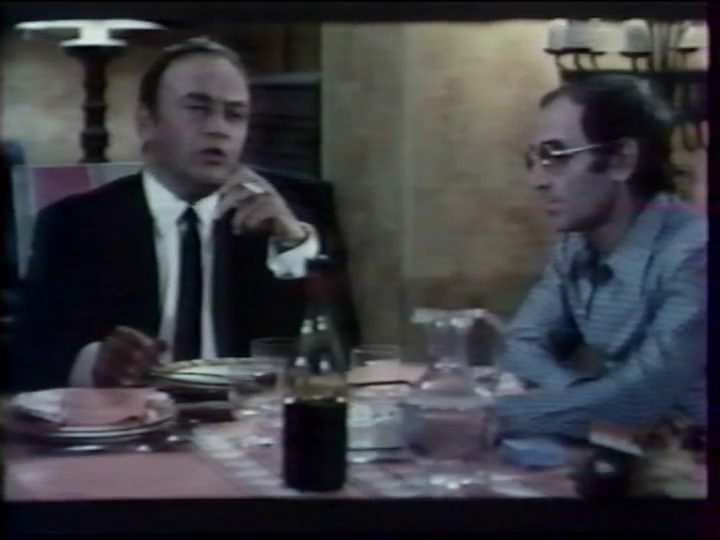 Alors là, moi je dis bravo à Léon Zitrone qui s'en sort magistralement et avec un naturel confondant dans le rôle de Léon Zitrone. Léon interview donc sur le plateau de télévision et pour son émission, le sieur Aznavour, qui vient donc de tuer Albert à bout portant (l'aide-kidnappeur à moustache et au Q.I. de mouche), en s'y reprenant à plusieurs fois. Etait-ce de la légitime défense dans la mesure où sa fille a été kidnappée au préalable, cet acte justifiant une colère puis une froide vengeance ? Aznavour répondra tel Zidane assénant un coup de boule sur poitrine : "n'en avait qu'à pas chercher, le coupable est la source du mal, buvez Vittel !".