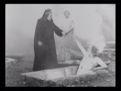 D'ailleurs à l'époque on jugeait le fait qu'un film soit un long ou un court en mètres; S'il dépassait 1000 mètres de pellicule, c'était un long. celui-ci en fit 1200 au final ! C'est du reste, LE film avec (et avant) "Quo Vadis ?" (1913) et "Cabiria" (1914) qui a transformé complètement la donne de l'appareil de production (studios à agrandir, délais et investissements plus grands). Idem, avant cet "Enfer", les films étaient soit des documentaires, soit des courts (même "les derniers jours de Pompéi", celui de 1908 !), mais dès lors qu'on a commencé à faire des "grands" films "d'art", on embauchait des compagnies théâtrales au grand complet. C'est d'ailleurs le cas pour "L'enfer" (mais si ça se trouve le sieur Gili en parle). Après ce film c'est devenu systématique, en tout cas pour ce qu'on nomme "l'âge d'or du cinéma italien" (en gros le boom allant de 1911 à 1914). Finalement, ils n'ont fait que "copier" ce que les Français, Allemands et Danois venaient de faire (le long-métrage). Et ça a marché !