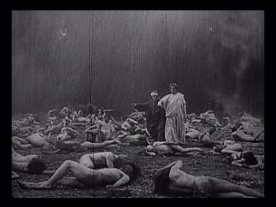 # Le trait commun à tous ces films, ceux qui ont donc lancé le format long, c'est que ce sont tous des films gigantesques, avec d'énormes décors, des foules, des effets spectaculaires (en tout cas pour l'époque) et "L'enfer" respecte tous ces critères tant et si bien que la suite fut à l'avenant, de manière plus "historique" : "Jerusalem délivrée" la même année (adaptée du poème du Tasse - Torquato Tasso - quant à lui), "La chute de Troie", idem en 1911, puis "Quo Vadis ?", "Marc Antoine et Cléopâtre" puis aussi Cabiria qui fut donc à la fois l'apothéose et un peu la fin du grand spectacle systématique. Ensuite, ce qui a commencé à marcher en Italie, c'était souvent des drames mondains (qu'on appelait là-bas le "cinéma en habits"), des histoires d'amour et de mort se situant dans des salons mondains de la haute bourgeoisie. C'était des films qui répondaient parfaitement au contexte de guerre et au besoin d'évasion. Du coup, dès 1914, tous les réalisateurs ayant donné dans ces spectacles colossaux ou faramineux se retrouvaient au générique de ces films plus "petits", les acteurs aussi (Padovan est passé à autre chose ensuite mais c'était l'époque alors des Pastrone, d'Annunzio, Emilio Ghione etc... ).