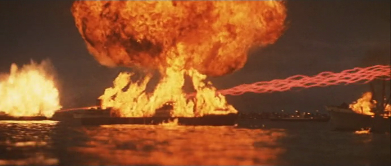 Bref, pour mieux se faire comprendre, autant noter en toute simplicité et sans analyse aucune, en quoi consiste l'histoire de "Ataragon" : un récit touffu, invraisemblable mais volontairement enclin à la fantaisie ; il brasse tant d'histoires en une seule qu'il finit par ressembler à un bouquet fleuri. Si je rajoute que le fameux capitaine Jinguji sera bien retrouvé sain et sauf, ce 20 ans après la capitulation du Japon, on peut affirmer sans honte qu'on n'a rarement vu script aussi parfaitement absurde ; en tout cas, sur le papier. Et c'est tant mieux ! Car c'est aussi ce qui lui sert de matière : ce dernier refusera dans un premier temps d'aider son pays, arguant qu'il est toujours en guerre contre certaines nations composant l'ONU, mais changera d'avis dès lors que le peuple Mu kidnappera sa fille. C'est du reste là, à l'instar du noyau terrestre dont se sert le peuple illustré à l'écran pour puiser son énergie, qu'Ishirô Honda puise matière à délivrer son message : d'abord via le personnage militaire, impérialiste en puissance, resté coincé dans des idéaux vieux de près de 20 ans - ceux qui séparent un Japon belliqueux, expansionniste, et un Japon plus moderne - ensuite par l'intermédiaire d'un peuple qui finalement n'est que le miroir des valeurs dans lesquelles il est resté englué. S'opérera enfin et à partir de là une prise de conscience. Et à Honda de délivrer un message naïf mais à propos en tout cas pacifiste, rappelant au passage non seulement les erreurs passées de sa nation, mais faisant preuve également d'une pudeur proche de la gêne dès lors qu'il faille régler par la violence, éradiquer purement et simplement le problème que pose ce fameux royaume sous-marin, lequel prétend à la suprématie et se déclare souverain des autres nations du Monde...