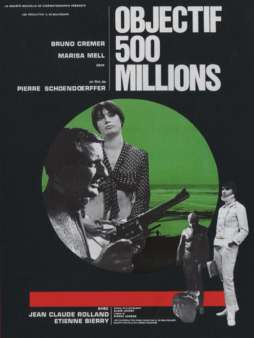 Vaguement prisonnier d'une image qui venait de lui être collée, Pierre Schoendoerffer reste dans un registre qui tiendra plus tard du domaine de la spécialisation, celui des portraits de baroudeurs et des guerres coloniales, ce qui lui convient bien mieux que les romans désuets de Pierre Loti. Celui-ci se réfère donc de manière on ne peut plus frontale à la Guerre d'Algérie et ses traumas. Bruno Cremer y campe un "officier perdu" (terme répandu à l'époque), un ancien de l'O.A.S. qui participe activement à un hold-up, et "Objectif : 500 millions", plutôt oublié à ce jour du grand public, demeure un bon film d'action mené sur un rythme solide et sûr de lui, qui plus est extrêmement bien joué par ses interprètes, en premier lieu par Bruno Cremer, mais aussi par Jean-Claude Rolland, le tout dans de beaux extérieurs filmés sur la plage de Lacaneau en Gironde. A propos de Jean-Claude Rolland, on remémorera également son sort funeste : celui-ci, emprisonné en 1967 pour un délit mineur, finira par se pendre dans sa cellule. A leurs côtés, on trouve la ravissante Marisa Mell au sortir de "New York appelle Superdragon" de Giorgio Ferroni. une actrice d'origine autrichienne ayant percé dès le début des années 60, notamment au sein du krimi avec "L'orchidée rouge". Les amateurs de films d'exploitation italiens la connaissent bien pour des performances qui suivront : "Danger : Diabolik!" et "Perversion Story". Post-synchronisée un peu laborieusement, elle parvient néanmoins, dans un récit viril, à apporter une certaine fraîcheur tout en conservant malgré tout crédibilité.