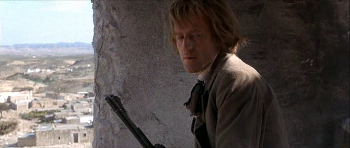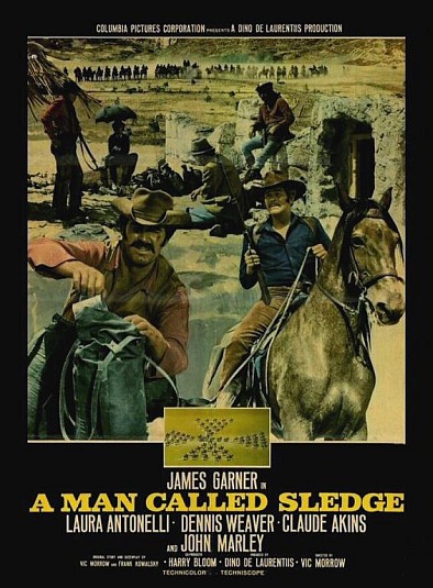 Dans l'ensemble, techniquement bien fichu, "A Man Called Sledge" est un western très solidement réalisé. Les gunfights y sont efficaces, l'utilisation des décors, en extérieurs ou en intérieurs, également, les péripéties s'enchaînent de façon rythmée autant que dynamique, les acteurs y livrent, avec conviction et charisme, des prestations convaincantes, solides elles aussi (mention spéciale à James Garner, fort bien secondé par Dennis Weaver et John Marley, excellent en vieux roublard au rêve d'or inaccessible), mais il est difficile d'adhérer aux méandres d'un scénario pour le moins hasardeux : dès son générique (deux personnages avançant lentement dans des étendues enneigées), "Sledge" part sur la traces du "Grand Silence", souhaitant probablement lui cligner de l’œil tandis que Morrow semble crier son amour pour le film de Corbucci avant de bifurquer soudainement avec le meurtre dans un saloon du coéquipier de Sledge, lequel est tué pour une partie de cartes gagnée à l'arrache (à noter que notre héros est à ce moment crucial dans la chambre de la belle Laura Antonelli, en train de la rudoyer pour tirer son coup). On s'attend, vu le speech fait par Sledge au bar juste avant ("Je ne comprendrai jamais qu'on puisse tuer un homme, comme ça, sans raison...") à un récit de vengeance et l'on voit celle-ci assouvie rapidement : Sledge, s'apercevant du meurtre (un tir dans le dos), se voit contraint de tuer les deux renégats qui, de toute manière, le menaçaient à son tour. Et à partir de là, le deuil n'ayant même pas eu le temps de se faire, débarque un vieil homme en la personne de John Marley, lui contant l'histoire de ce coffre gardé par une garnison de quarante hommes aux abords d'une prison et d'un bagne.