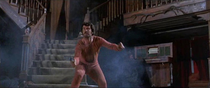 Certains d'entre-eux ont, avant-même le tournage de ce "nommé Sledge", déjà fréquenté le genre spagh' (on retrouve Wayde Preston dans "Cinq gâchettes d'or", "L'évadé de Yuma" ou encore dans "Sartana dans la vallée des vautours" aux côtés de William Berger). Idem pour Ken Clark, non cité avant et dont "Un nommé Sledge" signe quasiment le trépas westernien et cinématographique (tout en trépassant lui aussi très vite !), ce après une incursion très moyenne avec "Arizona Bill" de Mario Bava et, surtout, moult rôles secondaires dans le genre en question. Bien entendu, on le connaît mieux en combattant de litchis au sirop dans "Attack of the Giant Leeches" et pour avoir côtoyé deux gros musclés à Cinecitta (Mark Forest et Dan Vadis) sous de drôles de noms : Kubilai, Sayan ou Kabol. A noter tout de même pour le bisseux sexué qui sommeille en chacun de nous que ce dernier sortait tout juste du tournage de "Tarzana, sexe sauvage" avec Femi Benussi dans le rôle-titre.