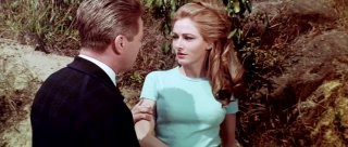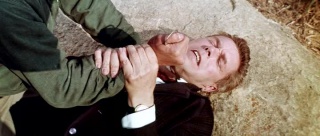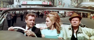 Un mot sur le casting, pour finir. C'est l'une des stars masculines du Krimi qui tient la vedette : Heinz Drache - que l'ont peut, toutes proportions gardées, considérer comme l'équivalent pour les films policiers allemands des années 60 de ce que fut Bogart pour les films noirs hollywoodiens des années 40. A ses côtés, le chauve Ralf Wolter, pilier du Sauerkraut-Western, joue un comparse assez en retrait, le Milou de Tintin en quelque sorte. Côté féminin, Sabina Sesselmann, bien que mise en avant au générique et sur les affiches allemandes, n'a qu'un petit rôle et n'apparaît que dans le prologue européen. En fait, deux autres actrices se partagent le premier rôle féminin et les faveurs de Drache : la Chinoise Angela Yu Chien et la franco-bavaroise Elga Andersen. La première, créditée sous le pseudonyme de Suzy May Wong, était alors une jeune débutante à la fraîcheur et au charme tout aussi indéniables que ses talents d'actrice. La seconde, née allemande mais arrivée en France à l'adolescence, pays où elle fera l'essentiel de sa carrière artistique au point d'être doublée en allemand pour tous ses films tudesques (des coproductions françaises pour l'essentiel), est incontestablement une très jolie fille, mais son myosis permanent (et sans doute artificiel, destiné à souligner le bleu de son regard) donne l'impression qu'elle est perpétuellement assoupie. On retrouve aussi deux Français au casting : le cascadeur vétéran Henri Cogan et le brun et athlétique (vous avez bien lu) Pierre Richard (ne pas confondre).