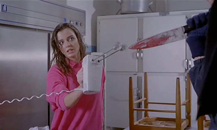 Néanmoins, s'il y a une chose à retenir ce cet opus giallesque, c'est sa violence graphique et suggestive très marquée, notamment au regard du fait que la bobine soit au final destinée au petit écran. Entre des meurtres ultra sanglants au pic à glace, on notera, entre autres gourmandises, un batteur-mixeur électrique servant d'arme défensive au début pour finir par exercer ses fonctions dans le sexe de la victime. A ce niveau, "Morirai a mezzanotte" s'avère pourvu d'une audace étonnante.