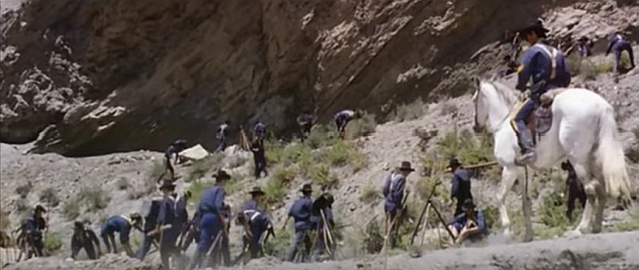 Pour tout le monde, cette disparition demeure une énigme. Mais ce vieux briscard d'Alan Pinkerton * (George Rigaud), dont le nom fait office de fonction de détective, a amorcé son enquête. Du reste, il y a un détour imprévu, emprunté par le bataillon, qui reste illogique et inexpliqué.