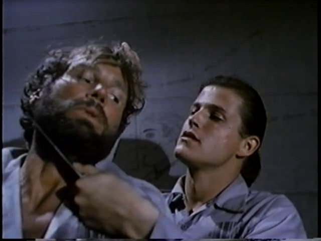 Face à cette illustre trogne, les jeunots John Laughlin et Michael Paré (alors en pleine gloriolle post-"Philadelphia Experiment" & "Les rues de feu") éprouvent bien des difficultés à s'imposer avec leur faciès bien propret.