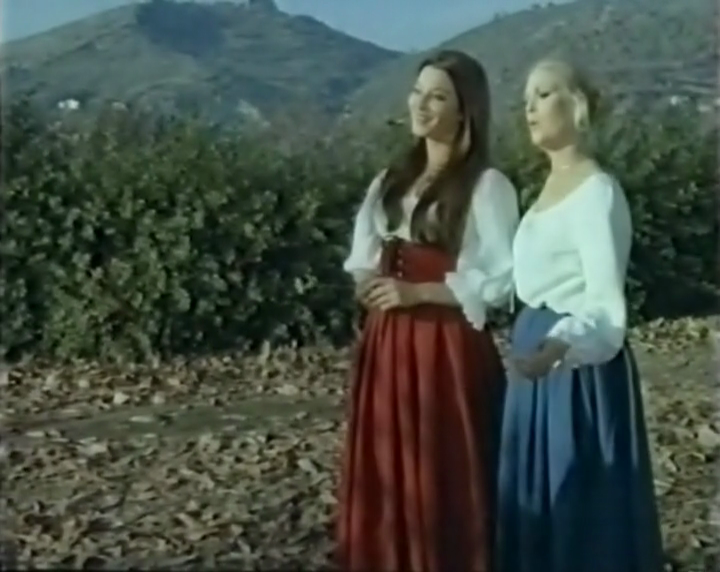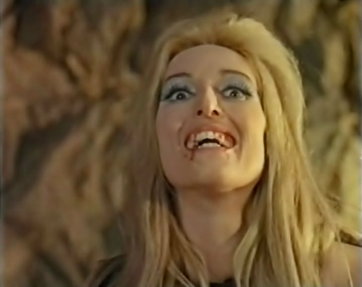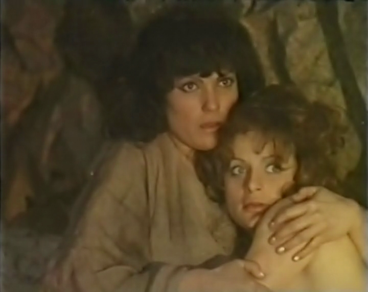 Nul procès à faire aux acteurs, il font ce qu'ils peuvent, suivent les consignes. Carla Mancini est, comme à son habitude, en retrait (et participe aux festivités païennes) tandis que parmi nos trois donzelles, outre la généreuse Rosalba Neri, on remarque la très rare Laura De Benedittis qu'on retrouvera deux ans après aux côtés d'Edmund Purdom dans "Le château de l'horreur" (Terror! Il castello delle donne maledette, 1975) sous la houlette de Dick Randall, ici coproducteur de la chose avec Harry Cushing (Lady Frankenstein, cette obsédée sexuelle) ; ainsi que Maria Teresa Pingitore dont c'est le seul rôle pour le cinéma et qui s'y montre très affriolante avec sa jupette rosebonbon et ses cernes de l'amour. Cette dernière fraye dans la partie au passé avec Hans, campé par Ferdinando Poggi. Un acteur de second plan que l'on croise dans tous les genres agités en vogue depuis le début des années 60 (L'homme du Minnesota, Homicide parfait au terme de la loi...) et qui se montre ici particulièrement falot.