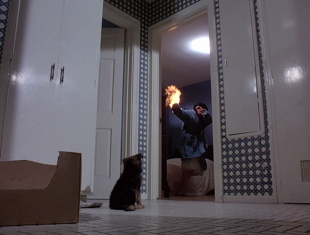 Une fois adopté, notre adorable chiot est vite responsable de la mort du dogue du voisin, retrouvé mystérieusement déchiqueté. Et les événements s'enchainent dès lors de manière un peu mécanique, faisant se succéder des scènes plaisantes et mignonnettes (notre toutou et ses lentilles vertes fluo) tandis que le mystère est absent (le chien est montré deux fois doté de cornes, arborant un visage démoniaque, explicite, vous avez dit explicite !).
