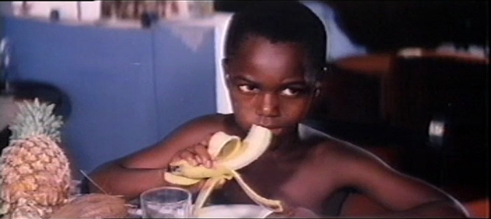 Du reste ça commence de manière assez giallesque, non loin d'un "Peur sur la ville" (Peur dans la paillotte africaine diront certains), avec cette jeune femme en danger, chez elle, prête à y passer avant un générique et sa musique zouk puis une entame où l'on apprend qu'un serial killer s'en prend à des jeunes femmes comme celles qui vient d'être assassinée en prélude. S'ensuit donc une enquête, classique, c'est sûr, avec des gens interpellés, interrogés et ce qui doit faire rire ces babouins blancs ce doit être lorsque l'un d'eux explique qu'il est nigérien et ne connait pas son nom car il ne connait ni sa mère ni son père. Surtout qu'il dit avoir faim et demande à boire. Sûr qu'on ne peut avoir faim et soif en même temps, donc gros LOL quoi. Quand la scène suivante montre le flic avec son enfant qui mange une banane (ah, c'te mauvais raccord !) - un enfant qui dit être fier que son père soit policier et demande à aller au foot - et que le papa lui répond "on verra ça plus tard, mange ta banane" (et donc on enlève le contexte de l'enfant qui a des horaires d'école, d'où la réponse du papa, et ça devient "Papa, si on allait au foot ?" - "Mange ta banane, on verra ça plus tard". Rire mortel niveau ceinture noire.